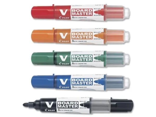 Pilot V-Board Master, 5 kpl, Musta, Sininen, Vihreä, Oranssi, Punainen, Pyöreä pää, Valikoidut värit, Muovi, Pyöreä