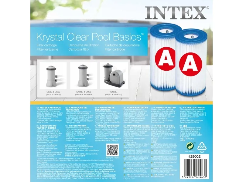 Make sure your pool water is kept clean and crystal clear in that you change filter regularly. This 2-pack filter cartridge type A is for Intex cartridge filter pumps with a pump flow rate of 2,006 litres, 3,785 litres and 5,678 litres an hour.