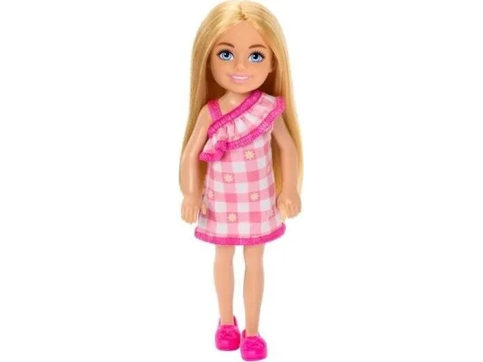 Chelsea, the youngest sister of Barbie, inspires young minds to explore and create! The adorable Chelsea small dolls wear bright colours and come with removable fashion pieces for dress-up fun. Added diversity and more variety in looks and hairstyles provide infinitely more ways to spark imaginations. Kids can collect them all to expand the play possibilities. Each sold separately, subject to availability. Dolls cannot stand alone. Colours and decorations may vary.Barbie Chelsea Doll, Small Doll Wearing Removable Checked Dress with Blonde Hair & Blue Eyes. Doll type: Fashion doll, Doll's gender: Female, Recommended age (min): 3 yr(s), Suggested gender: Girl. Height: 139 mm, Weight: 40 g. Material: Fabric, Plastic, Product colour: Multicolour