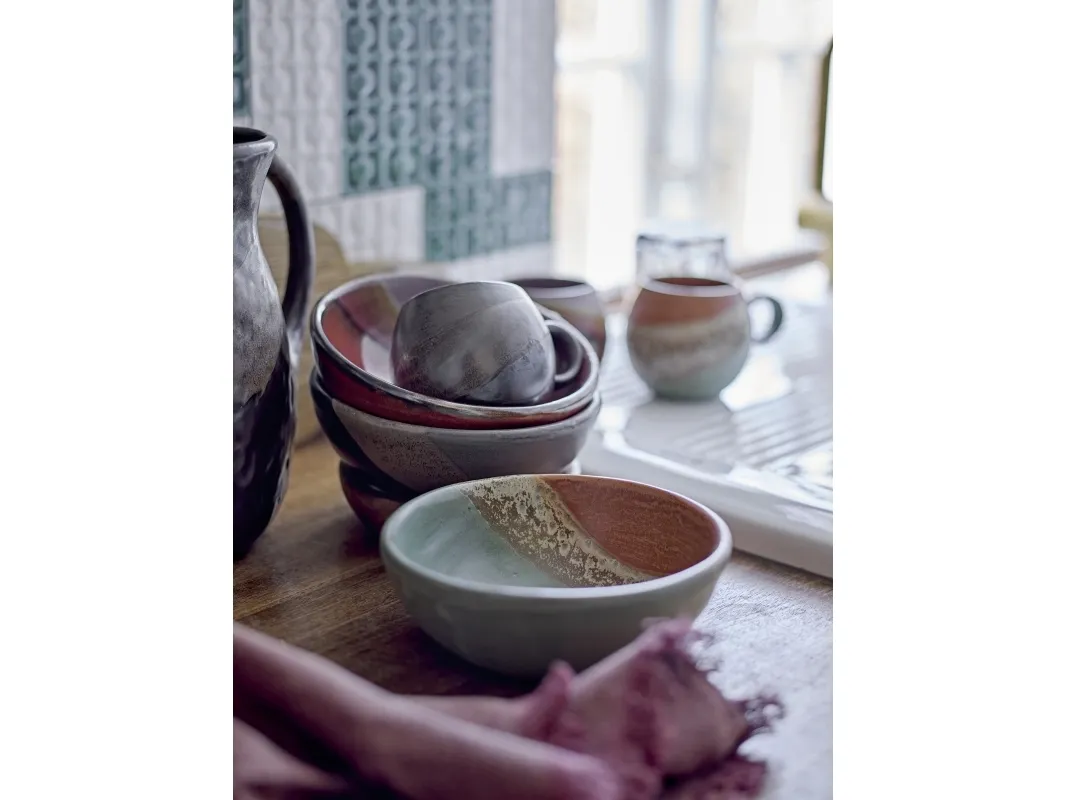 The Paula Bowl by Bloomingville is a beautiful stoneware bowl glazed in a beautiful blend of green, orange, and brown hues. Use it to serve snacks or as a decorative bowl on the table. The hand-painted bowl is unique, as every brushstroke adds a personal touch and creates a unique variation in the design.