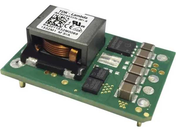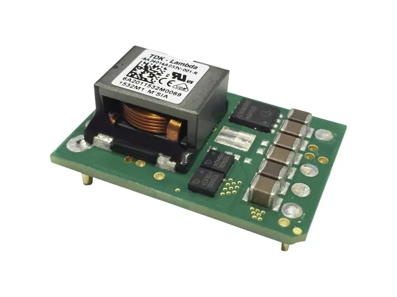DC-DC, printkortmontering, 1/8 Brick, indgangsspænding 24VDC, udgangsspænding 3.3-15V 20A, 250W, negativ logikI6A DC/DC-omformeren egner sig fremragende til at generere yderligere spændinger med Hohem mærkestrøm fra en 12, 24, 36 eller 48 V standardstrømforsyning. Typeltilbuddet omfatter modeller med 14A (i6A), 10-20A (i6A4W) eller 8A (i6AN) udgangsstrøm og bredt indgangsspændingsområde fra 9 - 40VDC og 9 - 53VDC. Takket være virkningsgrader på op til 98% har 1/16-Brick-modulerne en fremragende effekttæthed og er tilgængelige både i DIP- og SIP-format. Alle i6A arbejder som ren nedkonverter med udgangsindstillingsområder fra 3,3 V til 24 V (i6A), 3,3 V til 15 V eller 3,3 V til 40 V (i6A4W) og -3,3 V til -30V (i6AN). Typiske anvendelsesområder er inden for medicin- og kommunikationsteknik samt ved test- og måleteknik eller i industrielle anvendelser. Sikkerhedsgodkendelserne omfatter IEC/en/UL/CSA60950-1, IEC/en/UL/CSA62368-1; desuden er i6