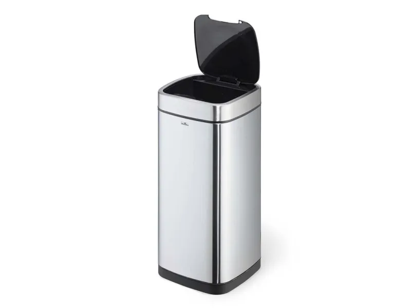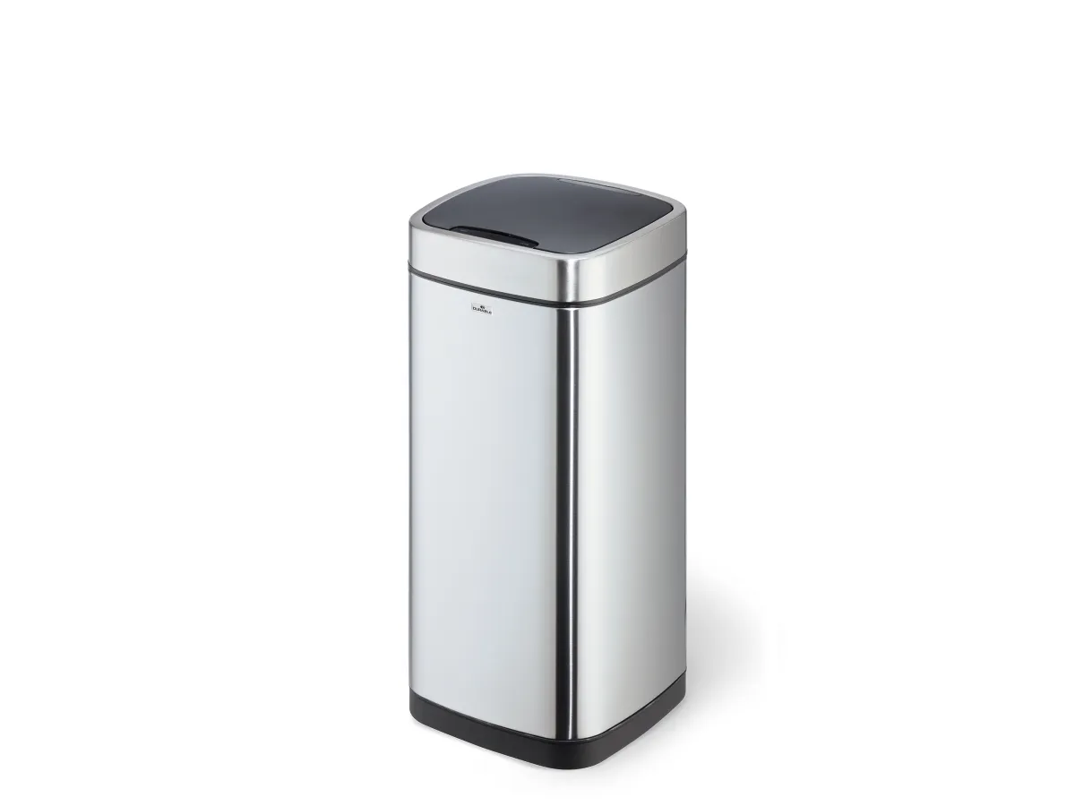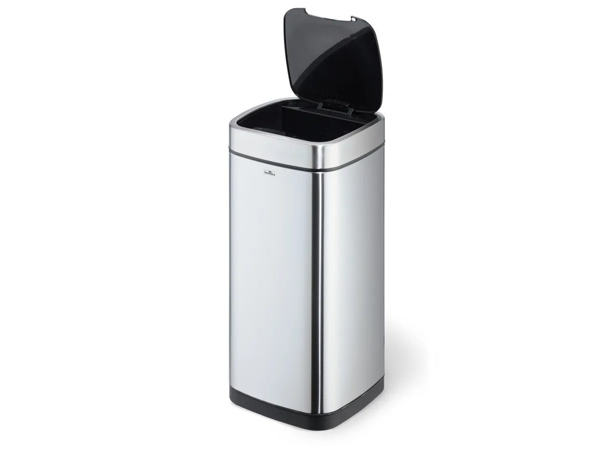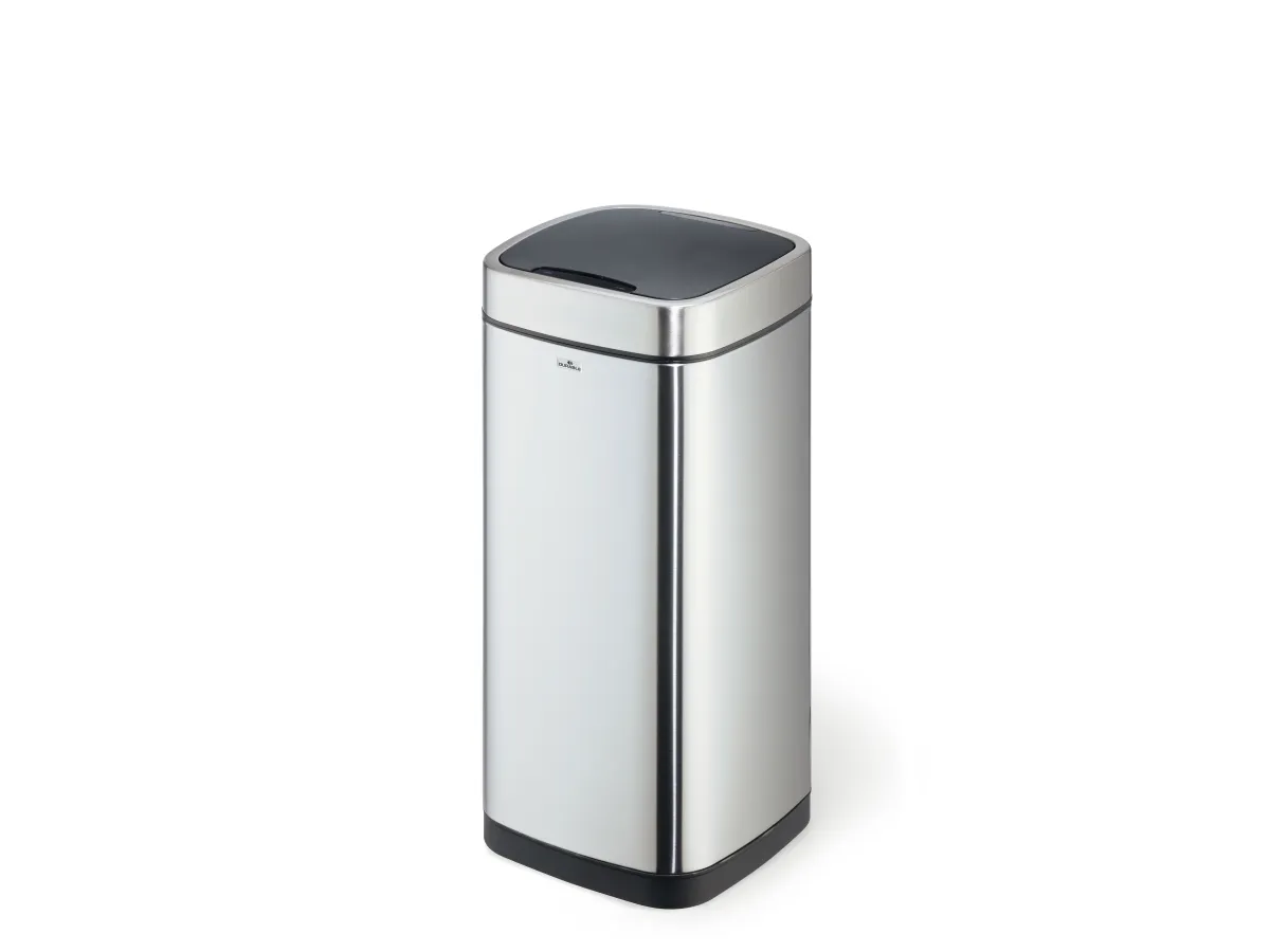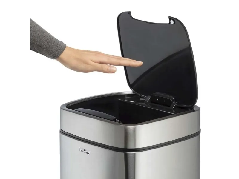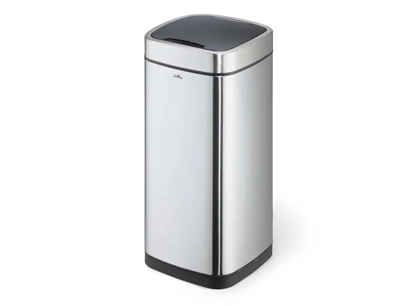 Convenient and hygienic: waste bins with sensor allow contactless waste disposal into closed containers, which is particularly necessary under strict hygiene guidelines. - Waste bin for contactless operation via sensor technology - Opens by a motion sensor and closes automatically, alternatively manually operated via Open/Close keys - Removable inner bin with handle and bag fixing - Removable lid for easy emptying - Soft-Close function of the lid - Carrying opening at the back of the waste bin - Stainless steel outer body with a fingerprint-proof coating - Non-slip base and square shape for space-saving placement - Requires 4 AA or AAA batteries (not included)
