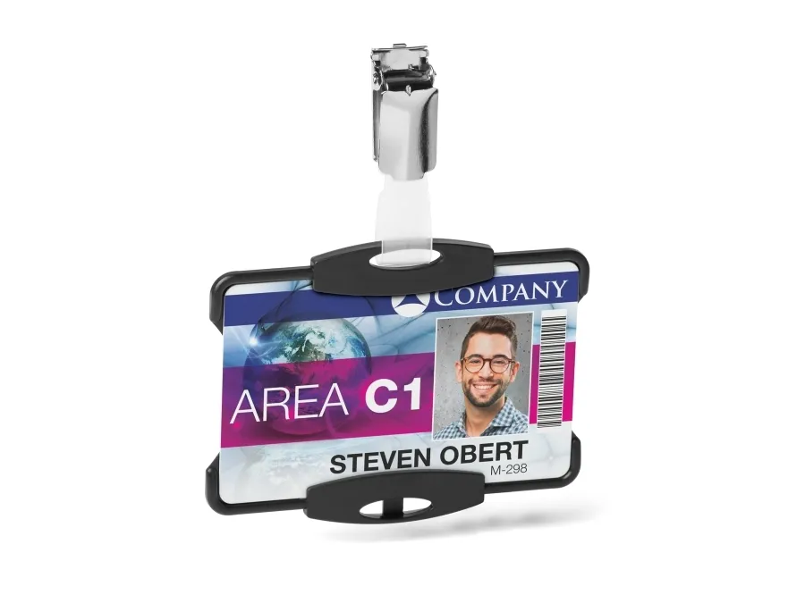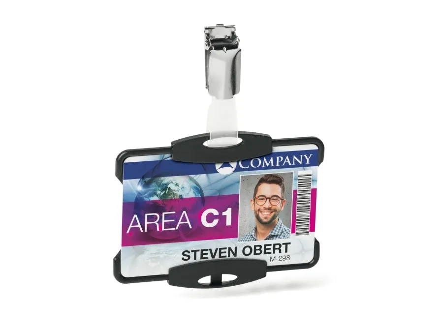 Discover the practicality and durability of the DURABLE ID card holder, designed for those who value environmental sustainability and efficiency. This card holder, certified by the Blue Angel Ecolabel, represents a commitment to eco-friendly practices without compromising on quality. Its open-face design facilitates quick access to your ID, making it an indispensable tool for professionals and students alike. Constructed from robust plastic, it promises to protect your identification through daily wear and tear, while its capacity to accommodate standard 54 x 87 mm cards ensures a perfect fit for most users. Choose the DURABLE ID card holder for a reliable, eco-conscious solution to your identification display needs.