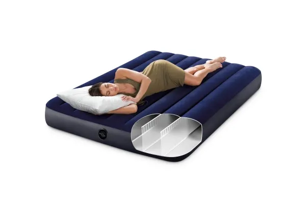 Indoor and outdoor use. With plush top. Enhanced with Fiber-Tech interior construction and built for long lasting durability, Classic Downy airbed is versatile and perfect for both in-home and camping. The airbed has plush top and vinyl sides and bottom and measures 137 x 191 x 25 cm.