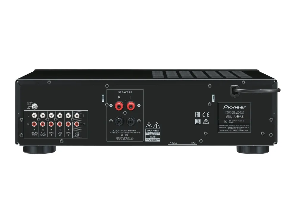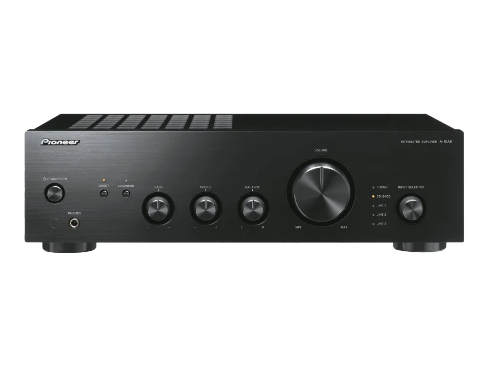 Based on Pioneer's Direct Energy Design concept, the A-10AE integrated amplifier pursues high S/N ratio to create overwhelming sound field rich with reality. Highlight features include isolated power supply, Direct Function, and phono MM input, letting listeners enjoy crisp, clear sound close to the original performance.