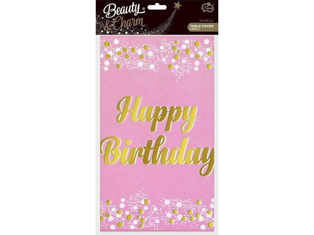 GoDan bordsduk i folie B&C Happy Birthday rosa 137x183 cm
