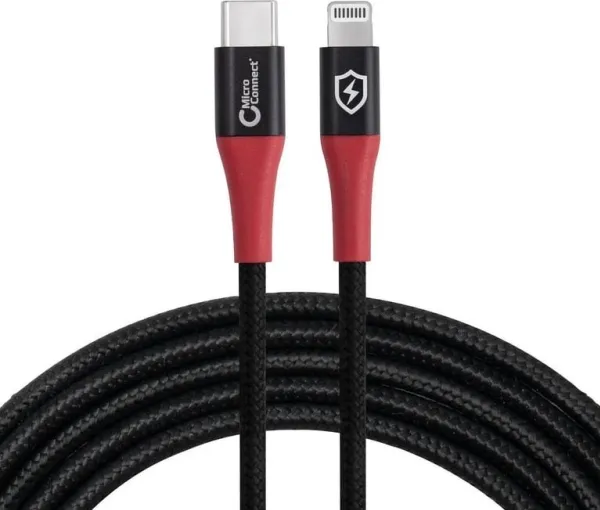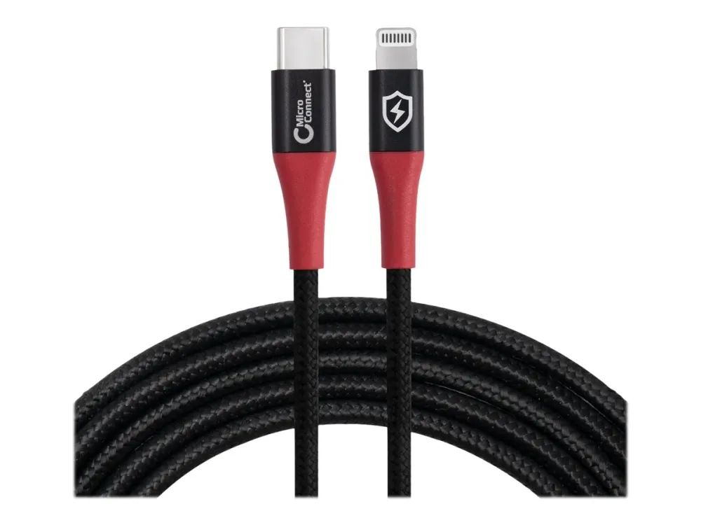 Safe Charge - We care for safety! USB-C to Lightning data blocker cable: Charging Only. Designed without data pins provides physical data blocking, and prevents data theft and leak prevention while stopping spyware/malware attacks on smartphones, tablets & battery powered mobile devices MFi Type C94 Connector Charging is 20V at 3A, 60W max.Microconnect MC-CLIGHTNING-SC. Cable length: 1.5 m, Connector 1: Lightning, Connector 2: USB C. Input voltage: 20 V, Input current (max): 3 A. Weight: 40 g. Quantity per pack: 1 pc(s), Package weight: 50 g
