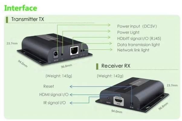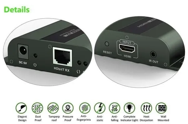 The HDbitT HDMI extender offers all the advantages of the latest transmission technology - HDbitT, allowing you to extend the HDMI audio / video signal with a resolution of 1080p 60Hz up to 120m using a single network cable. Support IR signal transmission, to control media playback of the source device from the position where the screen is. Due to the high bandwidth consumption, it is advisable to use these devices with IGMP routers, or alternatively on dedicated networks or on separate port based VLANs.Techly IDATA EXTIP-383RV4. Type: AV receiver, Cable types supported: Cat5e, Cat6, Maximum transfer distance: 120 m. Connectivity technology: Wired. Power consumption (max): 3 W. Width: 96.8 mm, Depth: 94 mm, Height: 23.7 mm. Quantity per pack: 1 pc(s)