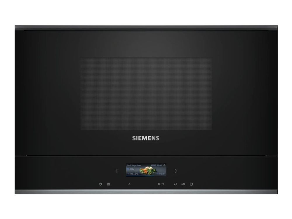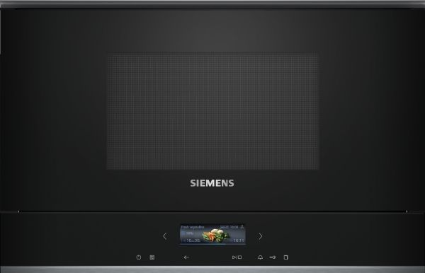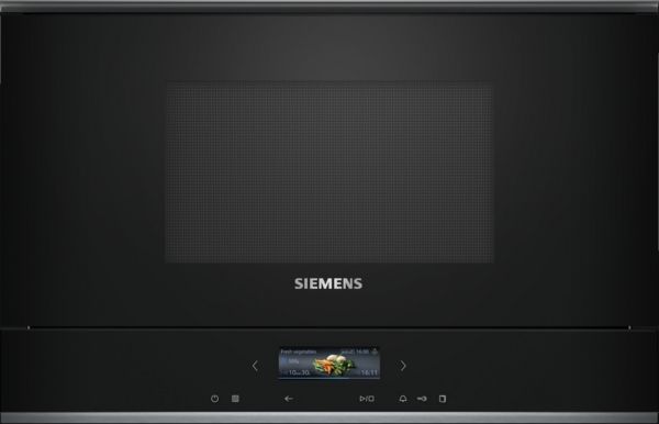 Discover the Siemens iQ700 microwave oven, a blend of style and functionality designed to enhance your kitchen experience. With a 21-liter capacity and a stainless steel cavity featuring a glass bottom, it offers both durability and ease of cleaning. The microwave is equipped with innovative hydrolytic cleaning, utilizing steam to effortlessly remove grease and residue. Its built-in form factor and right-hinged door ensure a seamless fit into your kitchen's aesthetic. The Siemens iQ700 performs exceptionally too, with 900 W of power, 5 power levels, and 7 cookControl automatic cooking programs, including a Quick Start function for your convenience. Safety is also a priority, with a fan cooling system to prevent overheating and a 24-hour auto shut-off delay timer for peace of mind. Whether you're defrosting, reheating, or preparing a gourmet meal, the Siemens iQ700 microwave oven is your reliable kitchen companion.