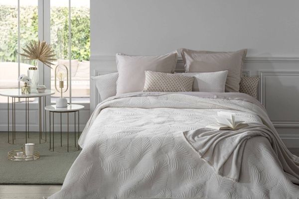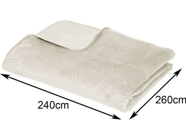 Kodin sisustus Leaf Ivory 240x260 cm veluurinen päiväpeitto
