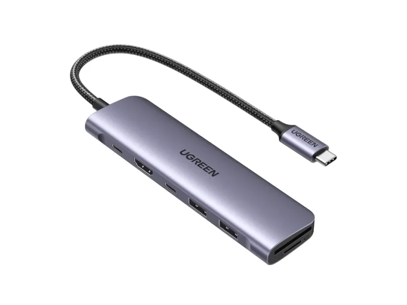 Ugreen 15214. Connectivity technology: Wired, Host interface: USB 3.2 Gen 1 (3.1 Gen 1) Type-C, USB Power Delivery up to: 100 W. Product colour: Lilac, Metallic, Compatible memory cards: MicroSD (TransFlash), SD, Maximum memory card size: 64 GB. Power source type: USB, Power connector: USB Type-C. Width: 130 mm, Depth: 36 mm, Height: 13 mm