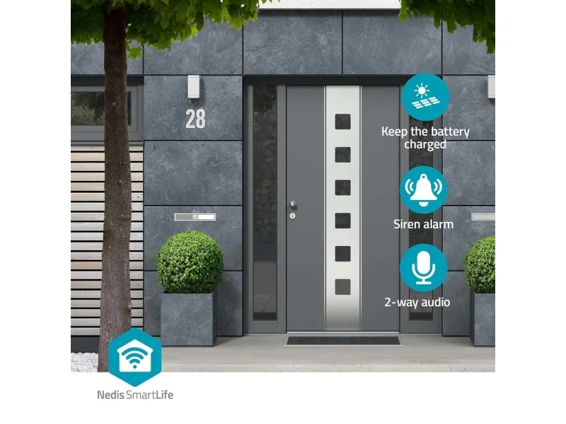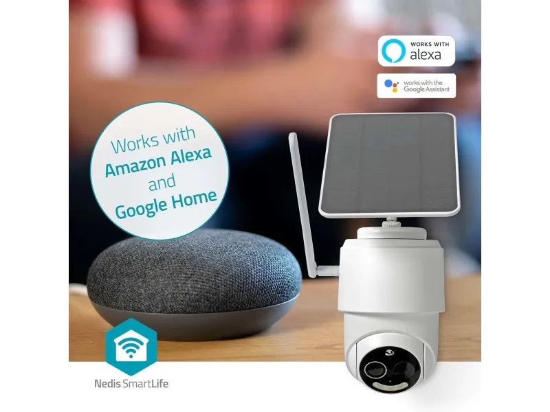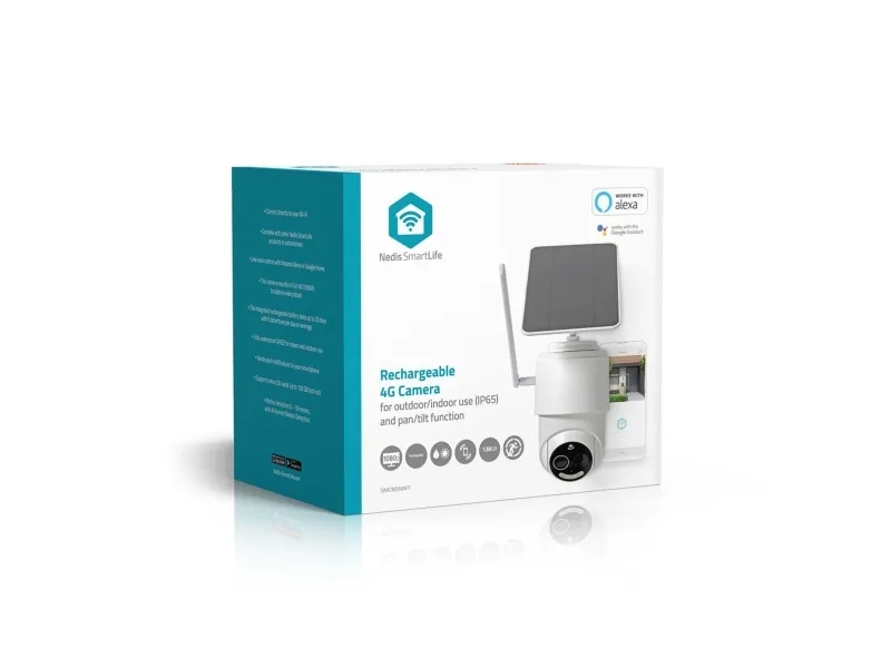 The Nedis SmartLife SIMCBO50WT offers a solution for monitoring both indoor and outdoor spaces. Designed with robust waterproof housing, this network surveillance camera is equipped with powerful infrared capability, allowing for visibility in low-light conditions. With a maximum digital video resolution of 1920 x 1080 and a 120° field of view, it captures quality images and videos to keep your property secure. Thanks to its pan and tilt functionality with a 350° panning range and 75° tilting range, the camera can cover a large area efficiently. Equipped with a 9000 mAh lithium-ion battery and an integrated solar panel, this smart camera functions in a variety of temperatures, from -10°C to 55°C. Enjoy the convenience of controlling your camera via compatible applications like Nedis SmartLife, using voice commands through intelligent assistants such as Google Assistant and Alexa. With features like two-way audio capability and motion detection, this surveillance camera is designed to provide peace of mind while ensuring that you stay connected to what matters most.