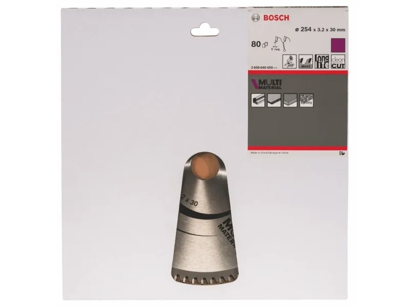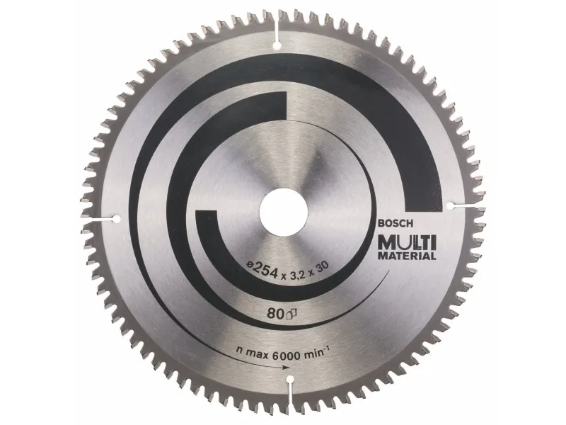 The Multi Material Circular Saw Blade delivers powerful cuts in a wide range of materials. Its high-quality precision-ground carbide teeth make the blade robust enough for cutting various materials, while its base blade made of dimensionally stable SK5 hardened steel (> 40 HRC) ensures accuracy. Furthermore, the blade´s expansion slots lower vibration during use, which dampens noise and reduces heat development. Use this saw blade in non-ferrous metals, aluminium, plastics, epoxy and wood. The HLTCG (High-Low Triple Chip Ground) teeth make the Multi Material Circular Saw Blade robust for working with abrasive materials.