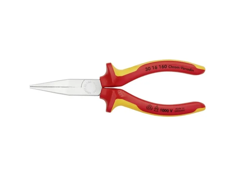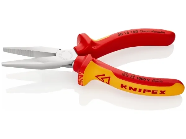 - heavy-duty and hard-wearing gripping pliers - different jaw styles - Chrome vanadium electric steel, forged, oil-hardenedKnipex 30 16 160. Type: Needle-nose pliers, Jaw width: 5 mm, Jaw length: 4.65 cm. Length: 160 mm, Weight: 150 g