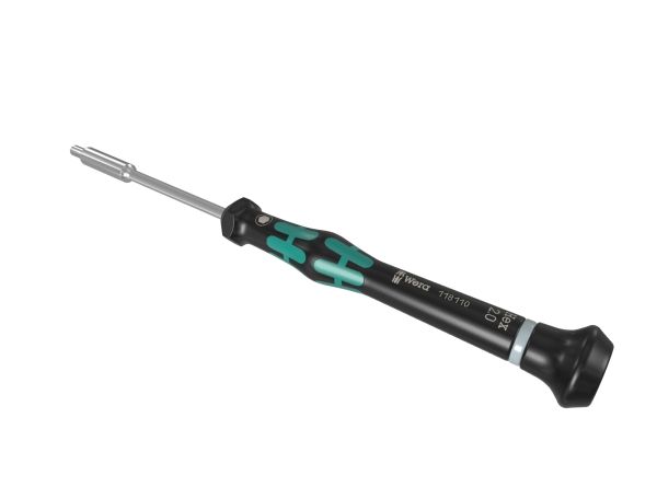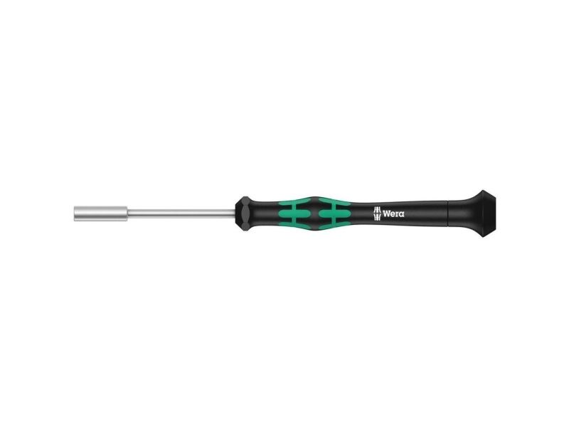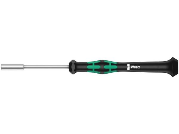 High quality Wera Micro nutsetter for precision mechanical work. Rapid twisting is possible by fixing the hand on the twist cap and using the fast-turning zone just below it. This makes time-consuming grip adjustments unnecessary. Power zone with integrated soft zones ensure the transfer of higher tightening and loosening torque. Precision zone for the right angle for adjustment work. "Take it easy" tool finder with colour coding according to profiles and size stamp – for simple and rapid accessing of the required tool.