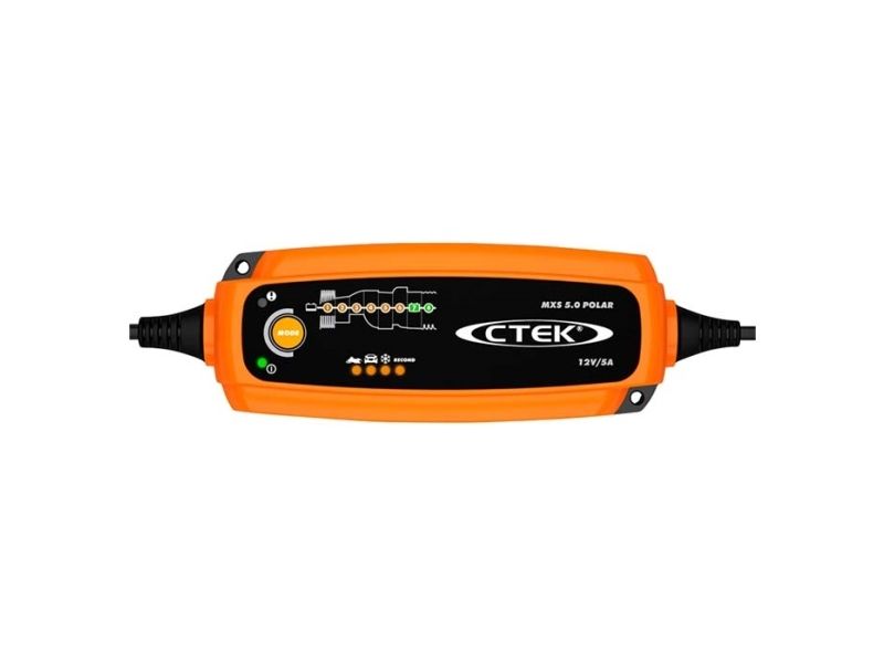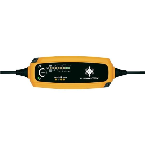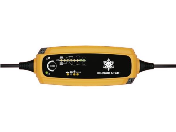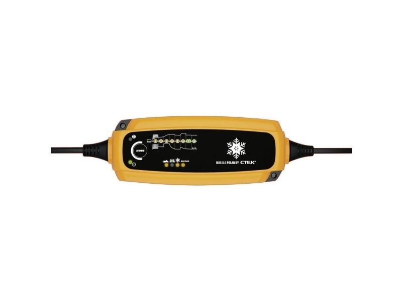 Automatikoplader MXS 5 .08-trins fuldautomatisk ladekarateristik IUoUp uden spændingsspidser · Stænkvandsbeskyttet og støvtæt (IP65) · Lyntilslutning · Sulfatbehandling · Batteritest og -diagnose · Absorption 14,4 V/14,7 V/15,8 V. · Flerkombinationstilstand til valgbare indstillinger for alle programmer · Forskellige tilbehørsdele gør det nemmere at bruge samme oplader til flere batterier · Istandsættelsesopladning af dybt afladet batteri · Patenteret desulfateringsteknik forlænger batterikapaciteten · Gnistfri, kortslutnings- og polvendingsbeskyttet · Automatisk registrering af alderssvækkede batterier. CTEK POLAR er en unik oplader med en moderne, højtudviklet teknologi og specielle muligheder for opladning ved høje kuldegrader. Den er udviklet til køretøjer, som i de kolde og mørke vintermåneder har brug for en god batteripleje, såsom snescootere, ATV'er, terrængående biler og personbiler. Enheden har en funktion med en modificeret ladespænding, der giver en optimal opladning v