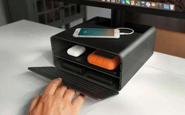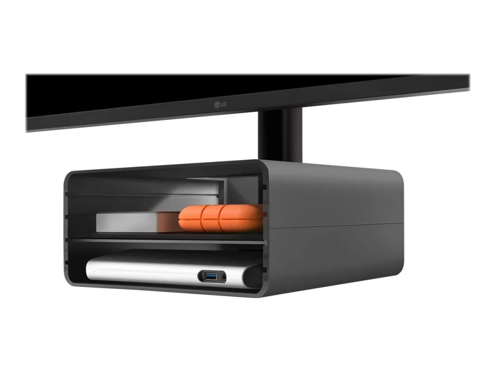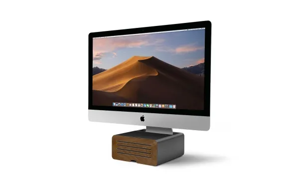 HiRise Pro is a beautiful, height-adjustable modern stand that boosts your iMac, or external display, for reduced neck strain while working. To reduce desk clutter, the all metal stand doubles as a gear garage for hiding your wallet, AirPods, hubs and hard drives. This sturdy stand includes a double sided grille to fit seamlessly into any setup.