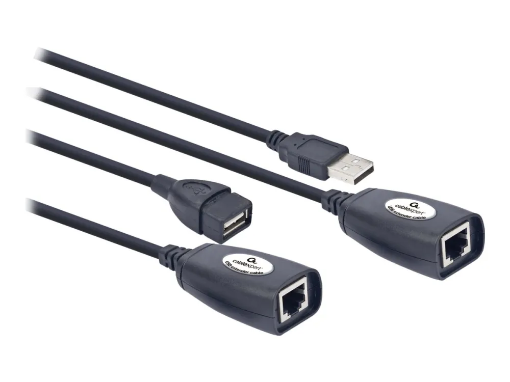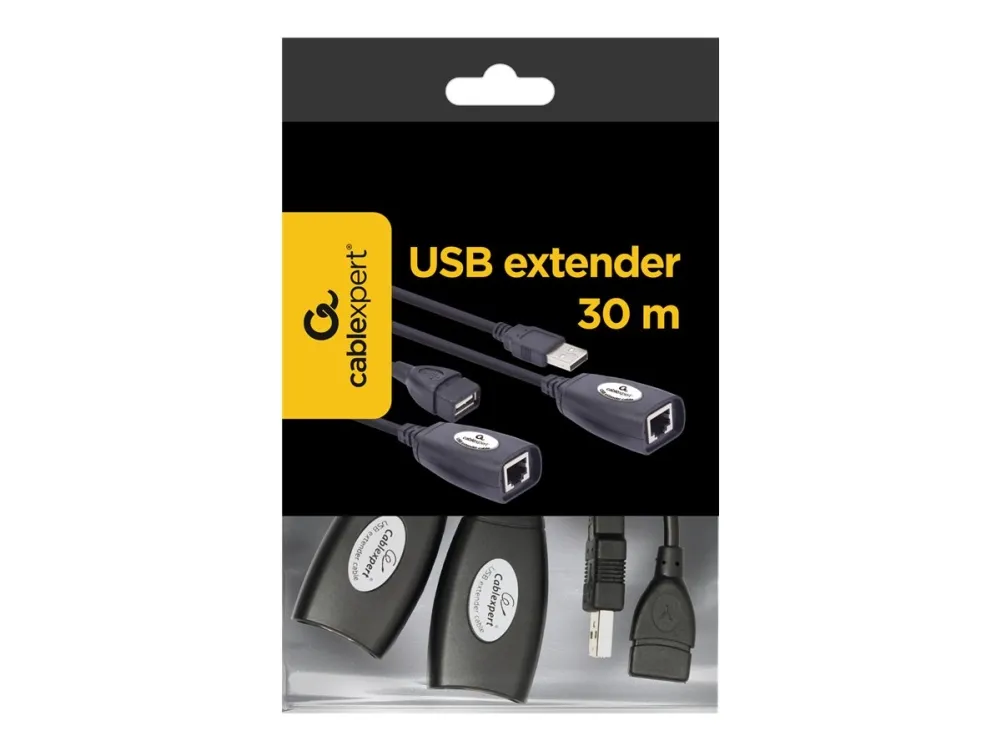 - Extend the range of your USB products\n- Uses LAN cables for the extension\n- Easy installation\n- If you want to extend a USB cable over more than 2 meters, it is better to use an active extension cable, because an active extension cable boosts the signal and therefore minimizes signal loss. This extension set uses LAN cables to extend your USB cable. This way it is possible to extend your USB cable up to 30 meters.