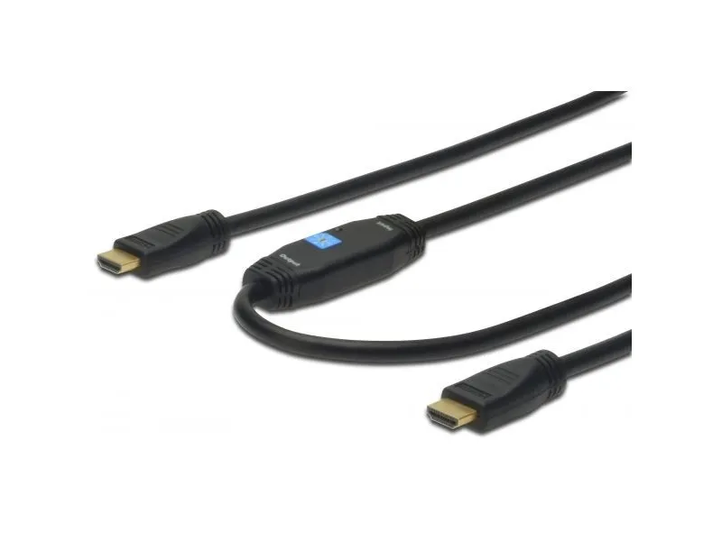 This Full HD (1080p) and 3D suitable cable with active amplifier used for connection of audio/video devices such as Blu-ray player, game pads or consoles, etc., for example, with a TV, monitor or computer.