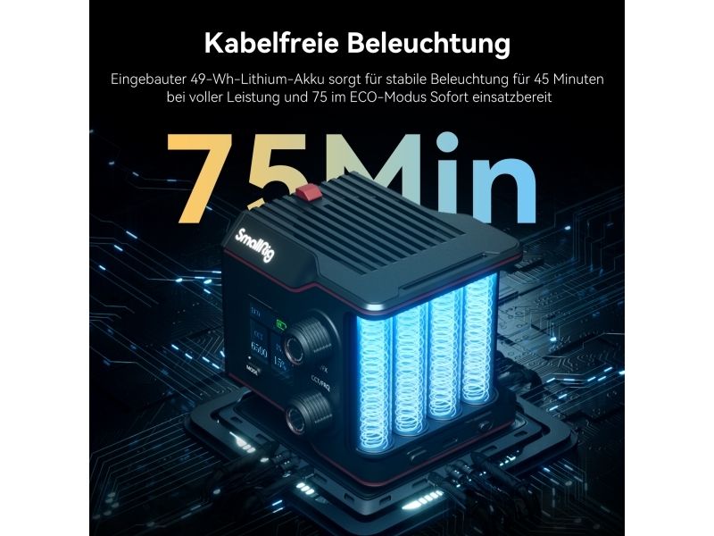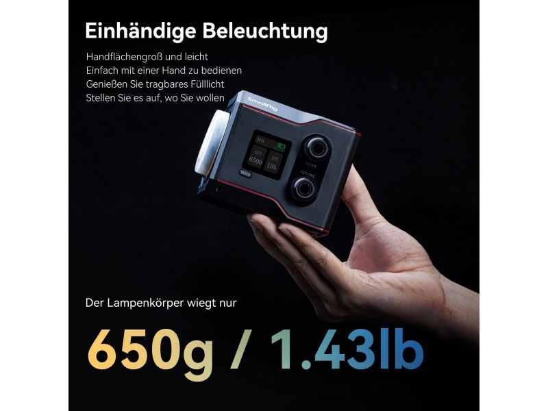 SmallRig 4376. Total power: 63 W, Number of bulbs: 1 bulb(s), Bulb type: LED. Product colour: Black, Housing material: Metal, Plastic. Energy consumption per 1000 hours: 48.96 kWh, Power source type: Battery, Power consumption (max): 100 W. Package weight: 1.5 kg. Weight: 650 g