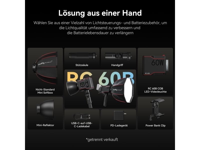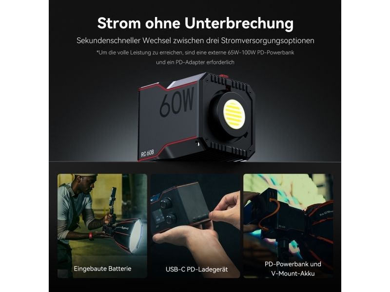 SmallRig 4376 LED-videovalo COB RC 60B, jossa on Powerbank-leike