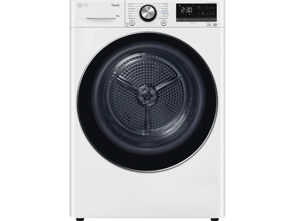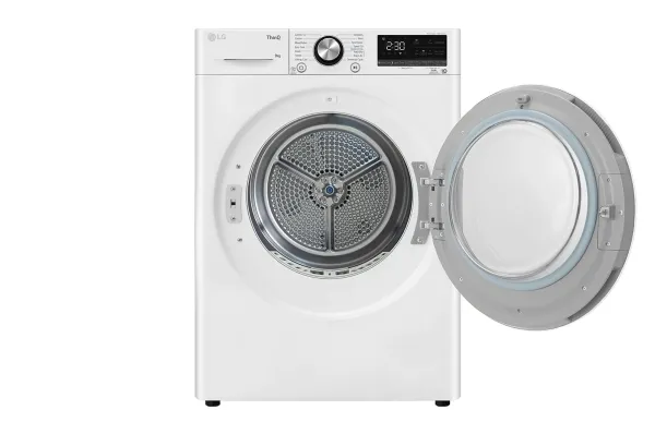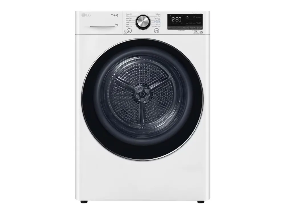 The LG RH90V9AV2N dryer combines advanced technology with high efficiency. Featuring a heat pump drying mechanism, it offers a maximum drying capacity of 9 kg, suitable for a variety of laundry loads. With 14 different drying programs, including options for cottons, woolens, and sportswear, this dryer can handle every fabric type with care. Features like Wi-Fi compatibility and smartphone integration enhance convenience, allowing users to control the dryer remotely.