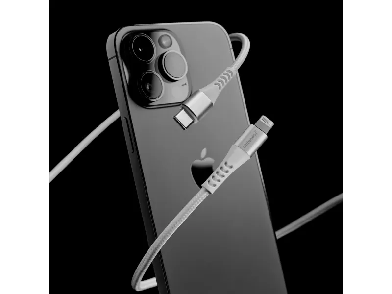 The Intenso C315L is a versatile cable designed to meet the needs of Apple device users. With a 24-pin USB-C connector on one end and a male Apple Lightning connector on the other, this cable connects iPhones, iPads, and iPods for both charging and data transfer. The cable supports Power Delivery 3.0 technology, allowing for fast-charging of up to 27 W, ensuring devices reach optimal power levels quickly.