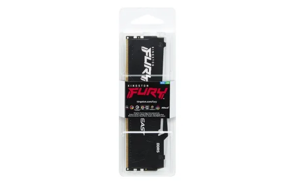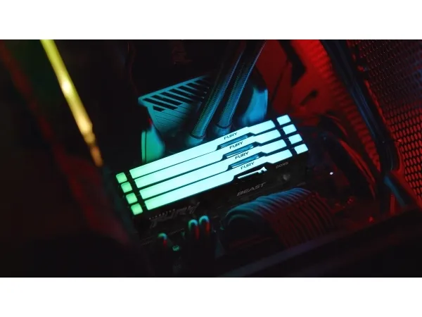 Kingston FURY Beast RGB tarjoaa lisää suorituskykyä ja tyyliä suurilla nopeuksilla, aggressiivisella muotoilulla ja RGB-valaistuksella, joka kulkee moduulin pituussuunnassa tasaisia ja upeita tehosteita varten. Siinä on Plug-and-Play-automaattinen ylikellotus suurilla nopeuksilla, ja se on sekä Intel XMP -valmis että valmis AMD Ryzenille. FURY Beast RGB pysyy viileänä tyylikkään, matalaprofiilisen lämmönjakajan ansiosta.