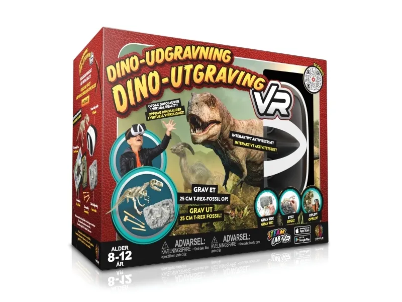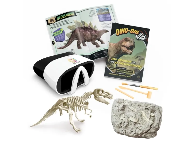 With this interactive activity set you can go back in time and walk with the Dinosaurs with 8 immersive VR experiences. Explore the science behind how the largest land animals that ever lived ruled the world.Use the included digging tools to excavate, build and display your own T-Rex fossil.