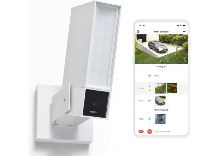 Netatmon älykäs ulkokamera hälytyssireenillä valkoinen (EN)
