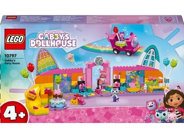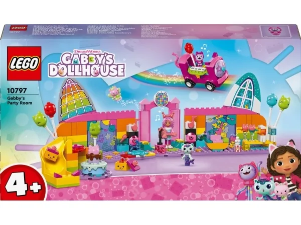 Gabbyn bilehuone (10797) on superhauska diskoleikkisetti DreamWorks Animationin Gabbyn nukketalo ‑sarjan faneille. Lasten hauska lelu kehittää itseluottamusta, keskittymiskykyä ja ongelmanratkaisutaitoja ja sopii alle kouluikäisille lapsille 4-vuotiaasta alkaen. Tytöille ja pojille sopivassa lelusetissä järjestetään hauskat diskobileet ja paljon muuta! Setissä on Gabbyn, Daniel Jamesin eli DJ Nauskiksen, Kisukeijun ja Merikatin hahmot ja monia musiikkiaiheisia, juhliin sopivia leluja, kuten työnnettävä bilebussi, jossa on sisäänrakennetut kosketinsoittimet, pyörivä tanssilattia, kitara, 2 mikrofonia ja kimaltava diskopallo. Loputtomien mielikuvitusleikkien näyttämö on siis valmiina! Tarvikkeina on esimerkiksi ilmapalloja ja rullaluistimet rullaluistindiskoon, popcornia ja 2 lasillista jäähilejuomaa juttelunurkassa sekä katapultti ja tölkit kaatamispeliin. Gabbylle on kakku ja lahjapaketteja, jotka toimitetaan liukumäkeä alas. Setissä on iso aloituspalikka, joka auttaa lapsia pääsemään vauhtiin rakentelussa. Rakentamisessa auttaa värikäs ja kuvallinen rakennusohje.