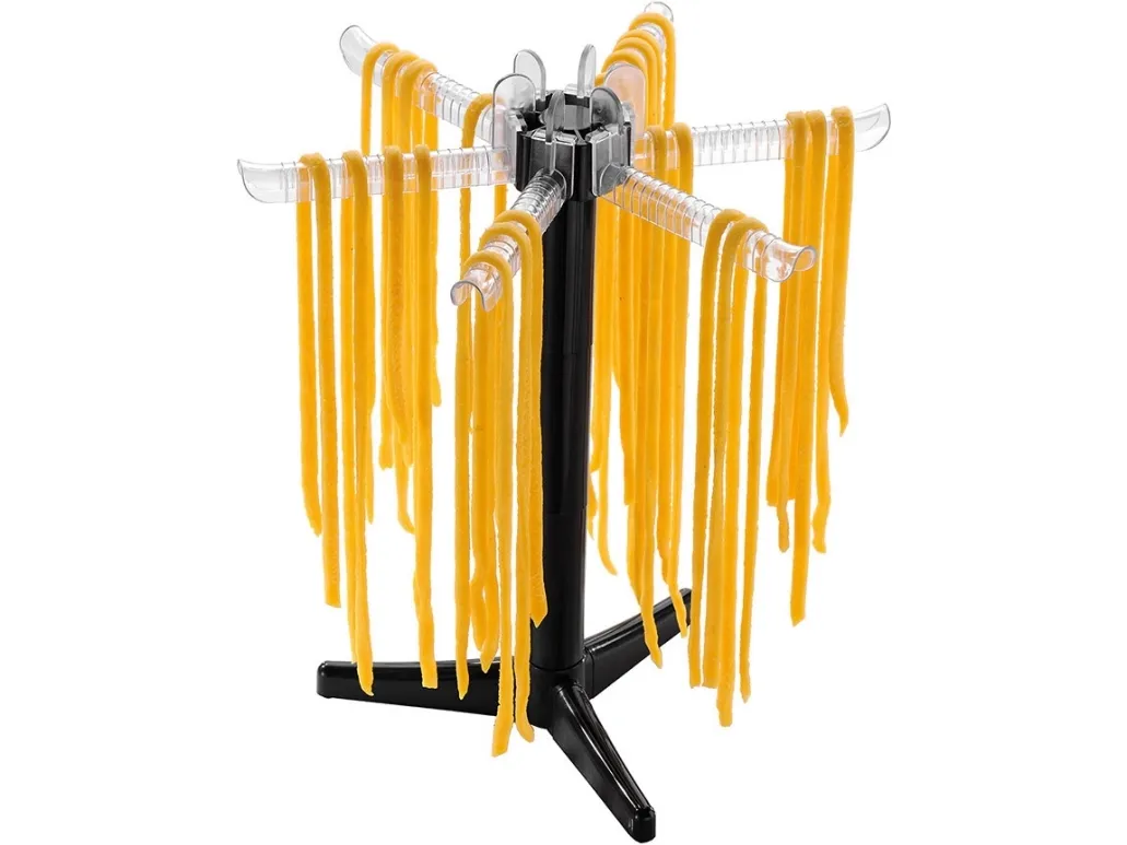 Six drying arms. Arms are detachable for direct removal of the pasta from the pasta machine. Can be taken apart for space-saving storage.GEFU CITTARE. Product type: Pasta drying rack, Product colour: Black, Material: Acrylonitrile butadiene styrene (ABS). Width: 269 mm, Depth: 269 mm, Height: 313 mm. Quantity per pack: 1 pc(s)