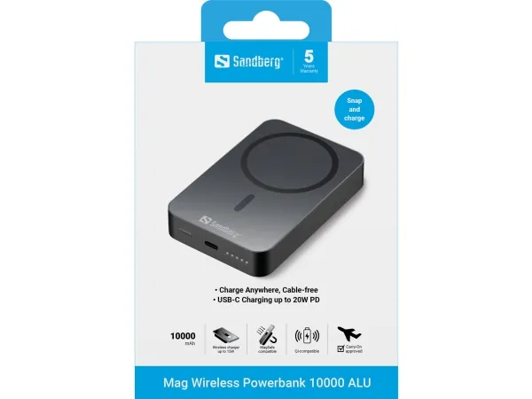 Sandberg 1000 ALU langaton tehopankki - Li - USB-C - 20 watti(a)