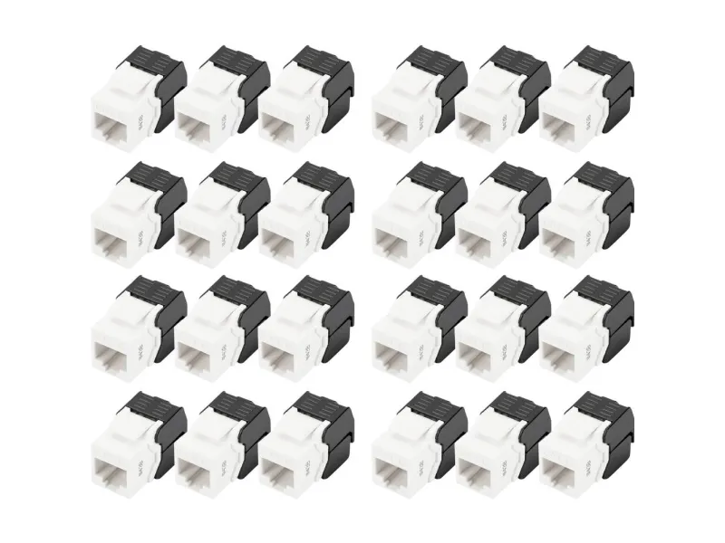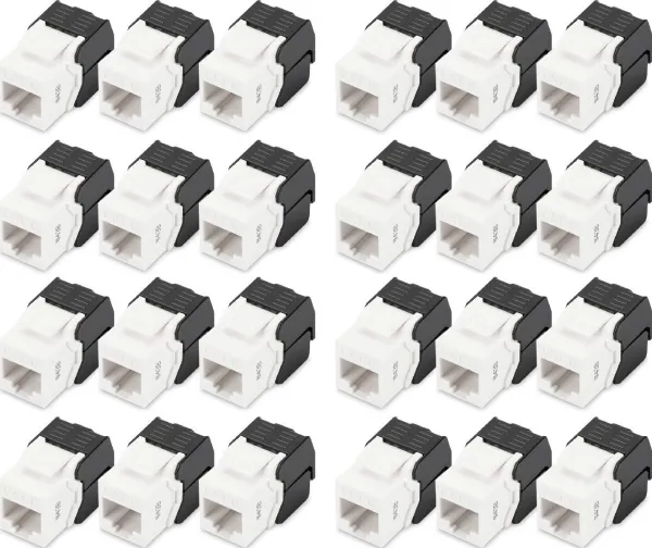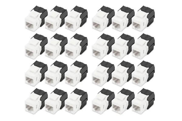 The item "DN-93603-24" from DIGITUS® is an unshielded keystone module with tool-free mounting connection, which offers you excellent performance and connection quality for your network. Its compact design allows 24 units to be installed in series in 483 mm (19") 1U panels.Digitus CAT 6 Keystone module, unshielded - 24 pcs.. Construction type: Flat, Product colour: Black, White, Connector 1: RJ-45. Package volume: 1512 cm³, Package width: 120 mm, Package depth: 180 mm. Quantity per pack: 24 pc(s)