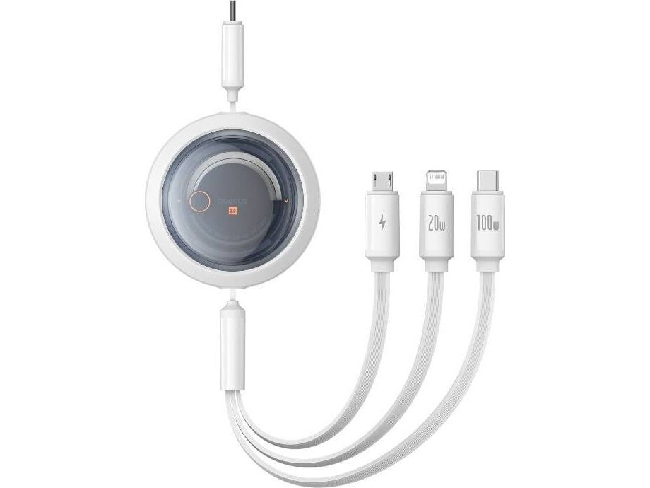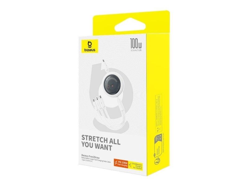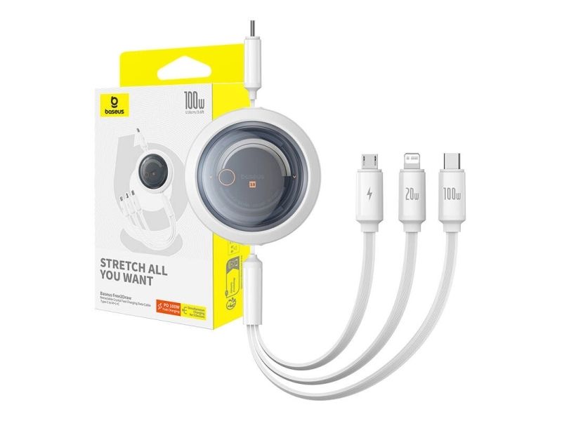 With the Baseus Free2Draw 3-in-1 cable, charging and data transfer becomes fast, convenient and hassle-free. With the ability to charge as many as three devices simultaneously, it is an indispensable companion for travel, work or home. It provides maximum power of up to 100 watts, and its clever design allows 4-stage length adjustment.