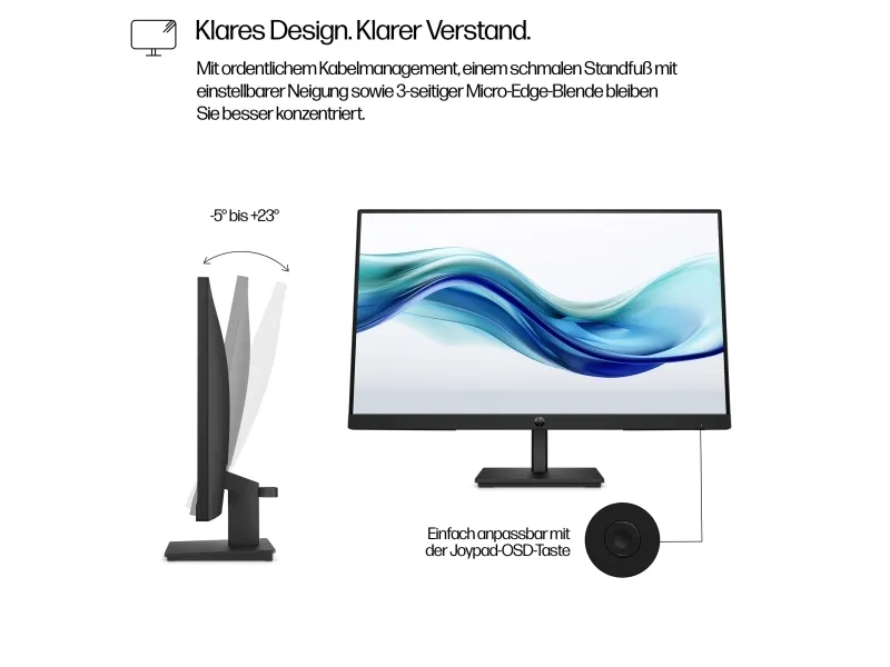 Expand your view and boost productivity with an additional 23.8 inches of workspace from this FHD monitor. Work in comfort with a crisp, smooth screen and simple design, so you can get more done every day.HP Series 3 Pro 23.8 inch FHD Monitor - 324pf. Display diagonal: 60.5 cm (23.8"), Display resolution: 1920 x 1080 pixels, HD type: Full HD, Display technology: LCD, Display surface: Matt, Response time: 5 ms, Native aspect ratio: 16:9, Viewing angle, horizontal: 178°, Viewing angle, vertical: 178°. VESA mounting. Product colour: Black