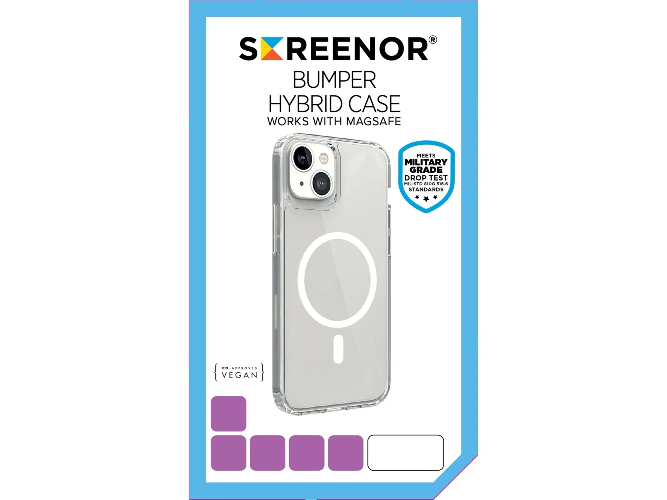 A transparent Screenor Magsafe Bumper case gives that little extra protection for your iPhone without compromising its usability or hiding its features. This cover enables Apple magsafe charging.