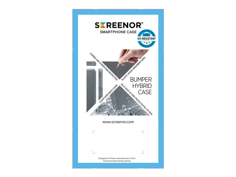 Screenor Bumper -cover has been designed to provide protection also to the fragile sides of the screen protecting glass.