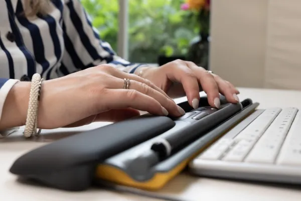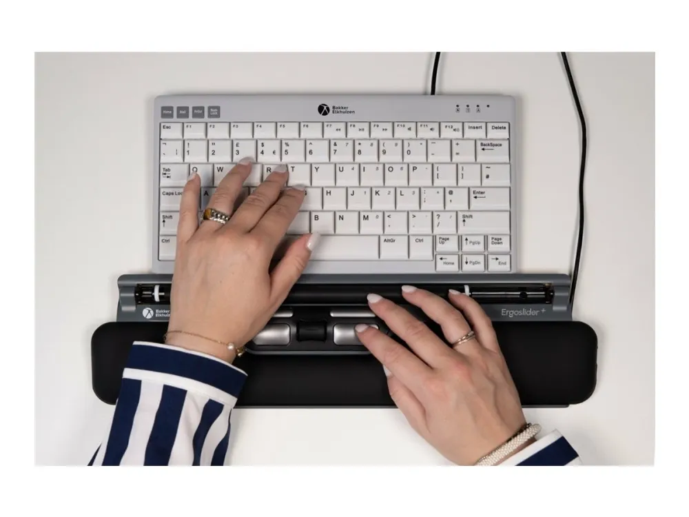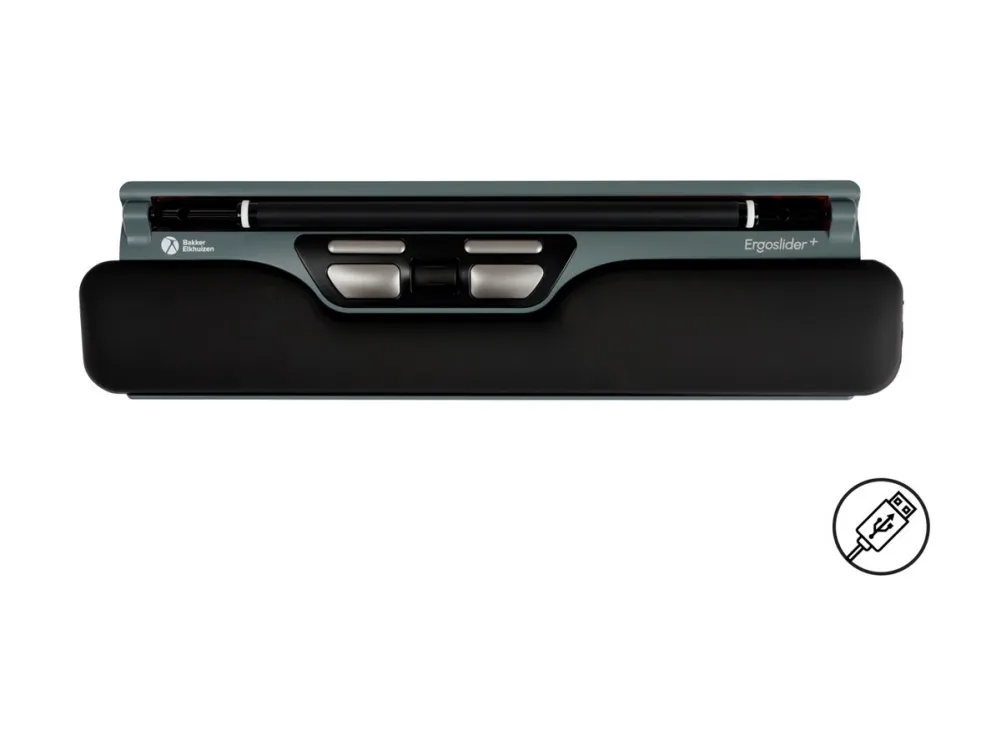 Discover the perfect blend of comfort and precision with the Bakker Elkhuizen ErgoSlider Plus. This central pointing device is engineered to cater to both right- and left-handed users, offering ergonomic support with its elevated wrist rest and rollerbar. With a movement resolution of 800 DPI, it ensures smooth and precise control, making it a choice for professionals seeking efficiency and comfort in their workspace. The ErgoSlider Plus is compatible with both Mac and PC, featuring a wired connection through a USB interface for reliable performance. Its Plug-and-Play functionality, complemented by a 1.4 m cable, allows for effortless setup and integration into any workstation.