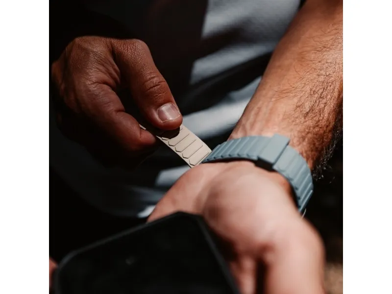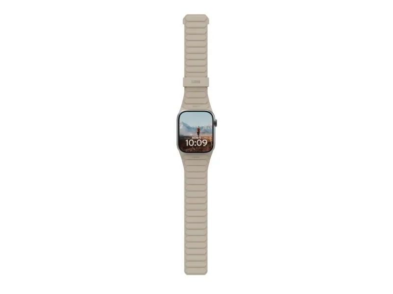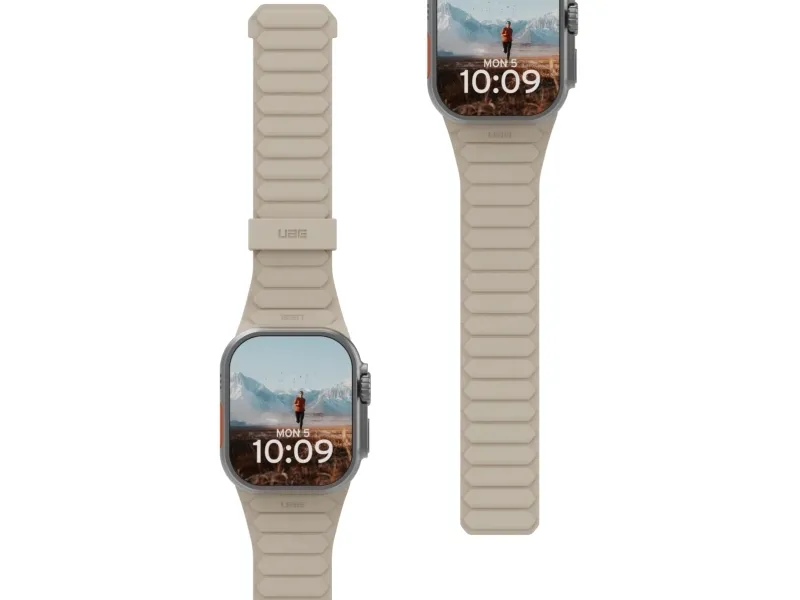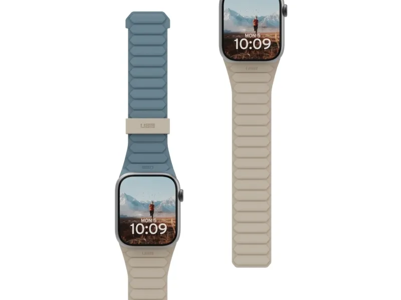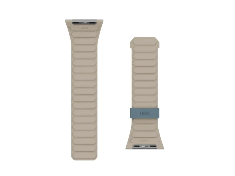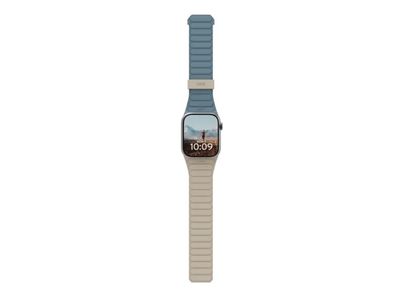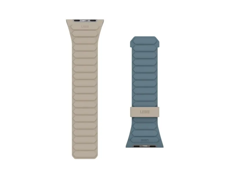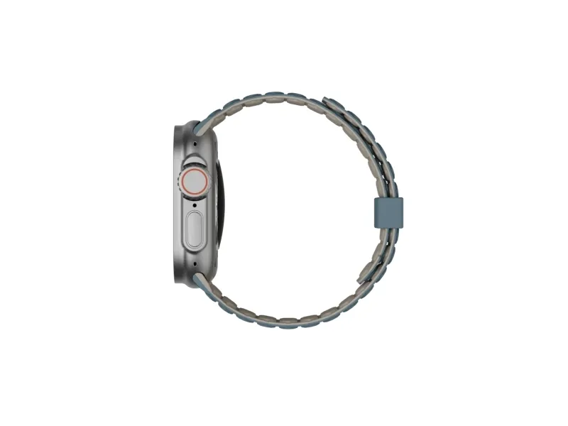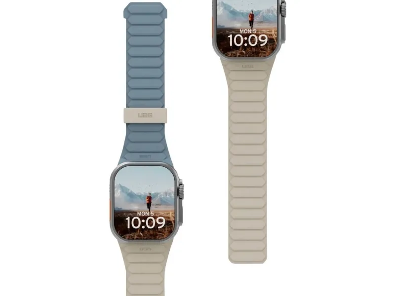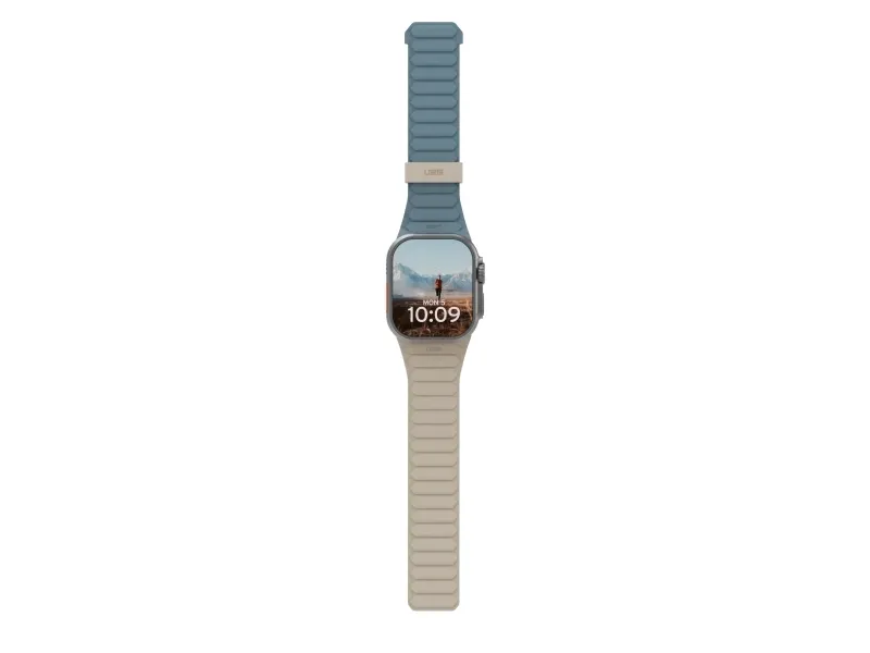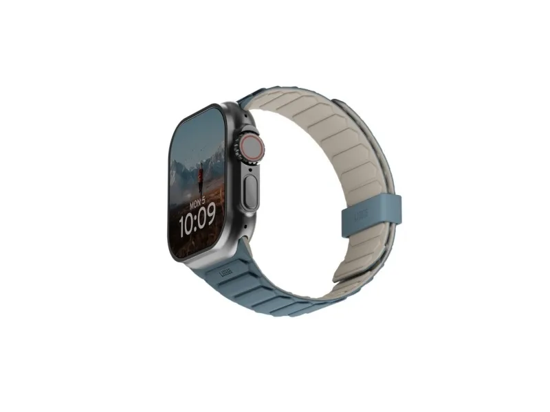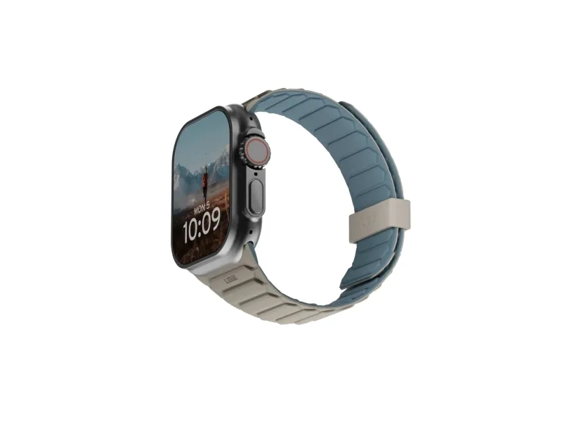 Upgrade your smartwatch experience with the Urban Armor Gear Apple Watch Pathfinder Dune/Cloud Blue. This innovative watch strap combines exceptional security comfort and style ensuring a perfect fit for your Apple Watch. Explore the blend of soft-touch silicone and powerful magnetic technology perfect for any outfit and any occasion. Reversible magnetic strap with dual-color safety loops Reliable security with end stop and included loop Precision-fit lugs for Apple Watch integration Exceptionally comfortable soft-touch silicone Stylish and versatile design Reversible Magnetic Strap with Dual-Color Safety Loops The Pathfinder Dune/Cloud Blue watch strap comes equipped with powerful magnets hidden within the band allowing you to effortlessly wrap it around your wrist for a perfect fit. The strap is reversible offering dual-color safety loops providing multiple color combinations to match any outfit or occasion. Reliable Security with End Stop and Included Loop Achieve peace of mind with the strap's end stop and included loop that ensure your Apple Watch stays securely attached to your wrist. The innovative design provides reliable security preventing accidental detachment and loss of your valuable smartwatch. Precision-Fit Lugs for Apple Watch Integration Designed specifically for Apple Watch the precision-fit lugs offer flawless integration and a seamless look. Whether you have the older Series 1-3 or the latest Series 7-9 or Ultra models the Pathfinder Dune/Cloud Blue watch strap guarantees a secure and perfect fit. Exceptionally Comfortable Soft-Touch Silicone Experience all-day comfort with the soft-touch silicone material of the Pathfinder watch strap. Avoid the discomfort and pressure points associated with traditional buckles and enjoy the lightweight and breathable design that makes it perfect for everyday wear. Stylish and Versatile Design The Pathfinder Dune/Cloud Blue watch strap boasts a chic and reversible two-colored design making it a versatile accessory to complement any style. Whether you're dressing up or down this stylish strap effortlessly matches your look and enhances your overall appearance. Package includes: 1x Urban Armor Gear Apple Watch Pathfinder Dune/Cloud Blue Product specifications: Compatible with Apple Watch Series Series 4-6 & SE 44mm Series 7-10 45mm and Ultra 1-2 49mm. Min Wrist Size 150mm. Max Wrist Size 200mm. Based on 49mm watch size. Reversible Magnetic Band Soft-Touch Silicone Mix and Match Dual-Color Design