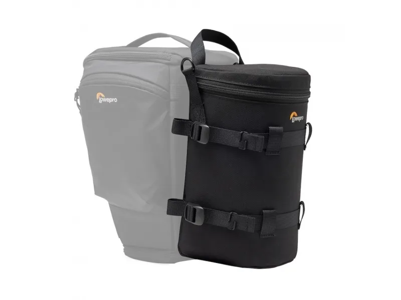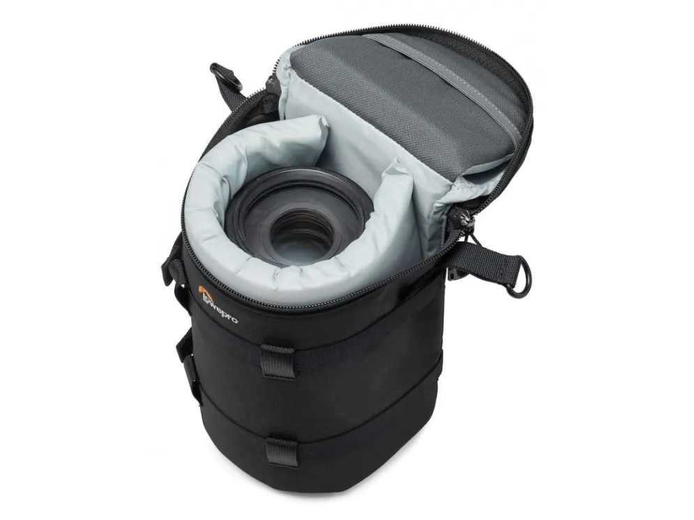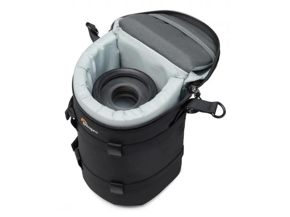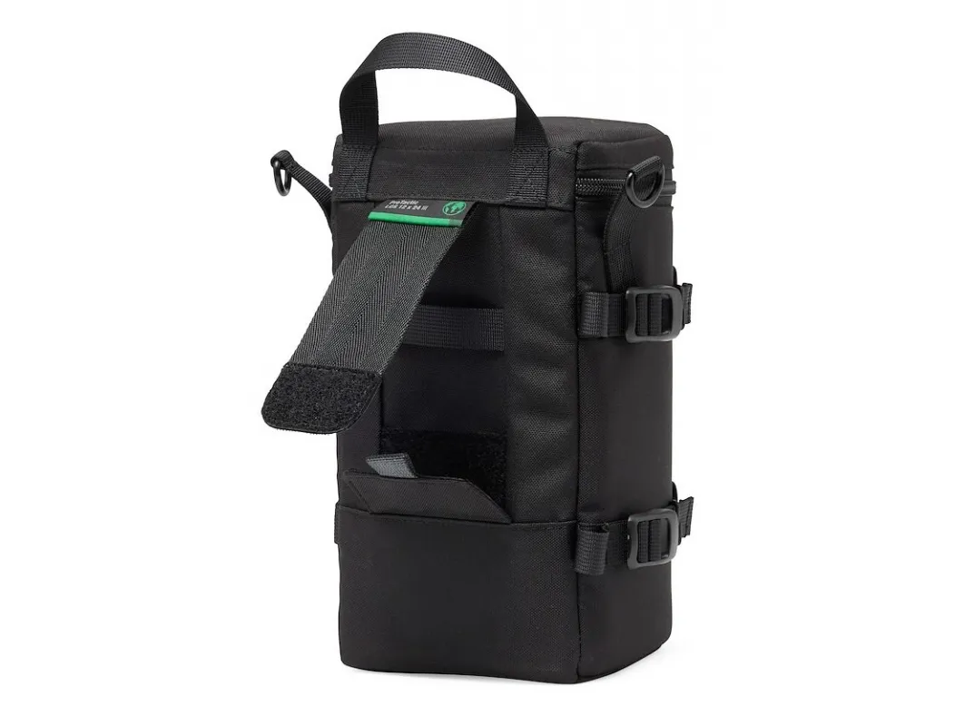 Premium padded lens case with adaptive compression to fit lens up to 12cm diameter & 24cm long. Use alone or attach to any SlipLock compatible bag or belt
