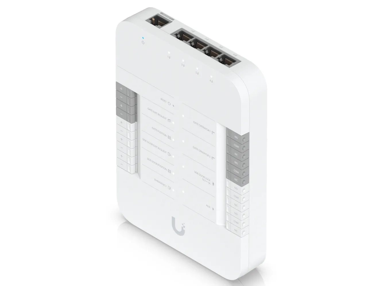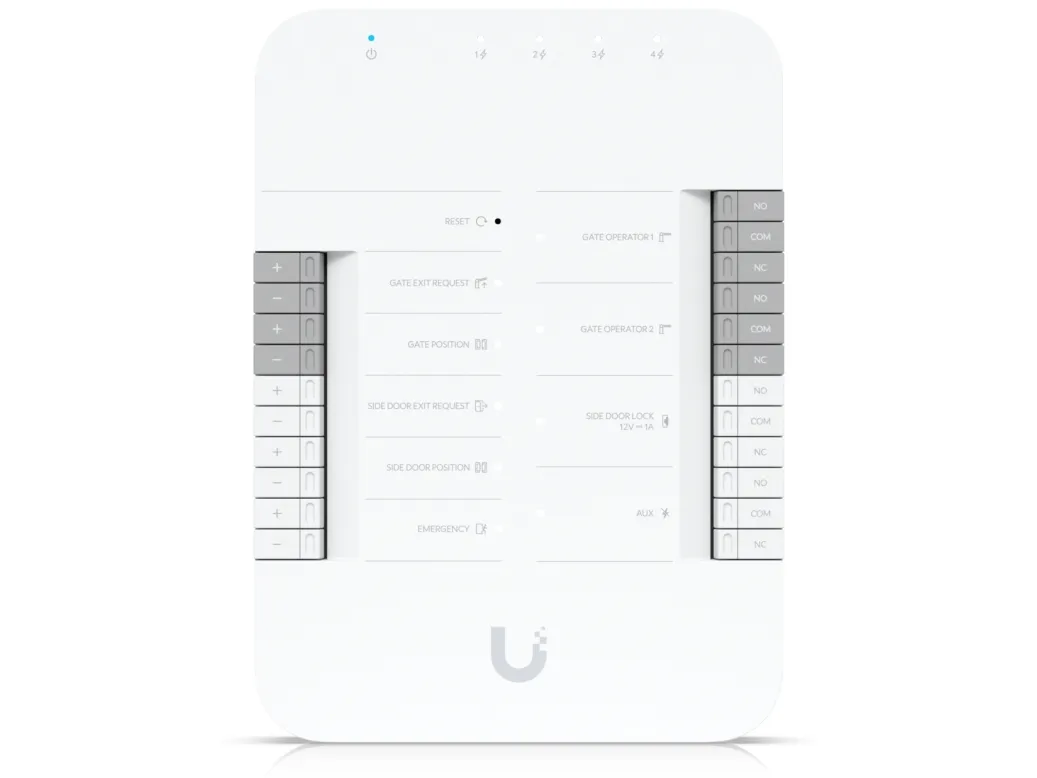 Equipped with four Power over Ethernet (PoE) connections, the Gate Hub supports seamless wired networking with Gigabit Ethernet technology, contributing to fast and reliable data transfer. This access controller features a reset button for straightforward troubleshooting, along with compliance to numerous standards, including IC, FCC, UL 60950-1, UL 294, UL 62368-1, NDAA, and CAN/ULC 60839-11-1, ensuring trust in quality and safety in your network infrastructure.