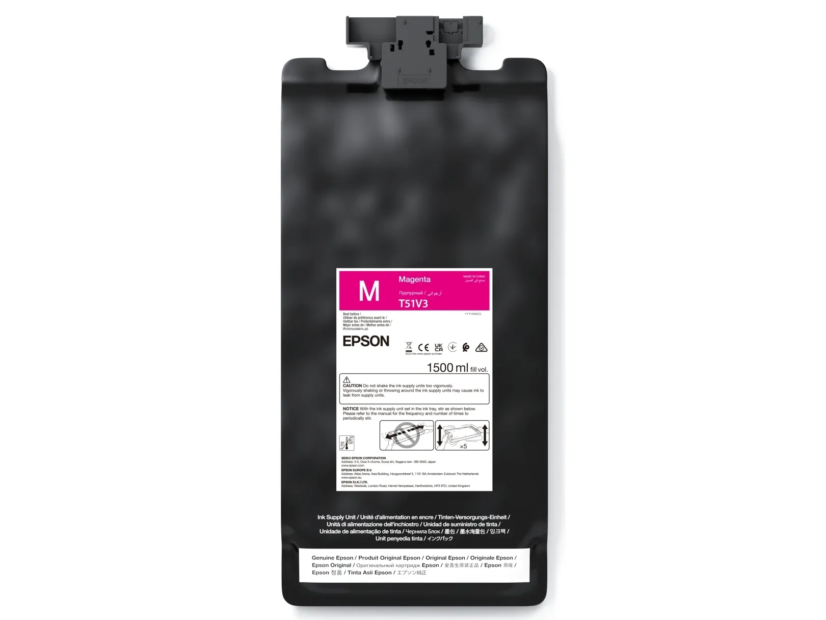 The Epson T51V3 ink pack is designed for high-quality printing with Epson's UltraChrome GS3 Ink technology. This ink pack, with a capacity of 1.5 L, ensures consistent and vibrant color output suitable for a variety of printing needs. Ideal for professionals seeking reliable performance from an ink-jet and solvent ink printing solution, the T51V3 allows users to achieve results across different applications while maintaining the integrity of each print.