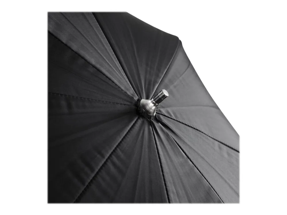 The workmanship of the umbrella is extremely high quality and it impresses with its classy look. Both the tip and the frame are made from metal which ensures higher stability and a longer lifetime. The metal shaft end is reinforced so it can be inserted into the reflector holder on the flash device more easily.
