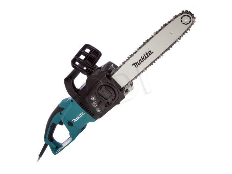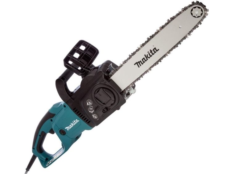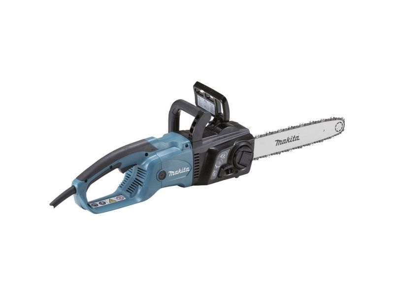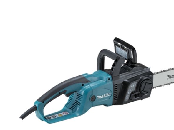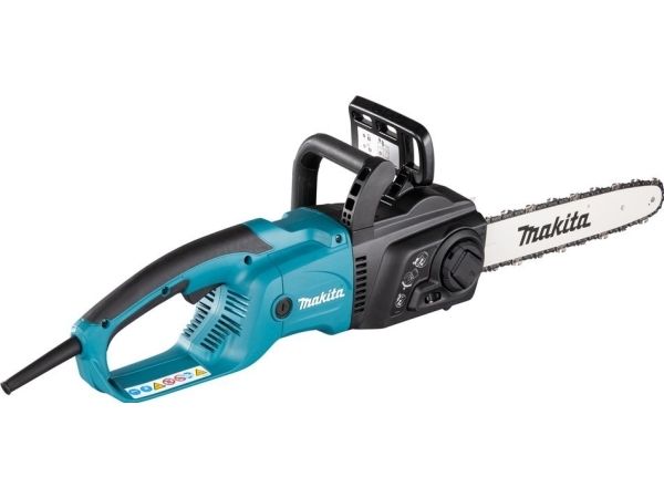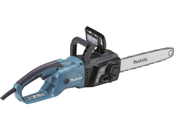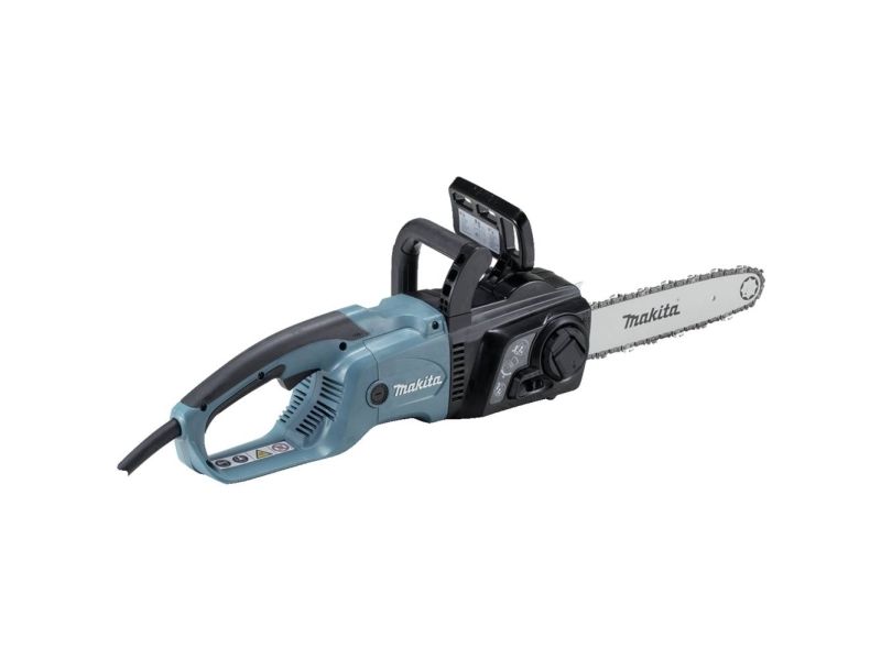The Makita 14" Electric Chain Saw is engineered for fast cutting, efficient operation and easy maintenance, without the hassle of gas. The UC3551A has a chain speed of 2,900 FPM for efficient cutting and trimming. The motor has a built-in current limiter which is engineered to protect the motor from burnout by reducing power when the saw is overloaded, and an electric chain brake for maximum productivity. Additional features include an automatic chain oiler for heavy continuous cutting, and a large oil reservoir with view window that allows the operator to easily check the oil level. For increased comfort, the chain saw has ergonomic rubberized grip handles, and a large trigger switch with soft start for smooth start-ups.
