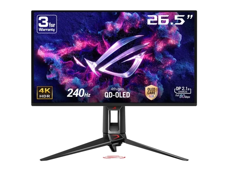 The ROG Swift OLED PG27UCDM is a 27-inch, 240Hz 4K gaming monitor that boasts the latest fourth-generation QD-OLED technology to deliver supersharp visuals and crisp text. The cutting-edge QD-OLED panel offers greater longevity compared to previous OLED technologies and minimal flicker―even when frame rates fluctuate. With the addition of the Neo Proximity Sensor in the new ROG OLED Care Pro suite, the monitor transitions to a black screen when no user is detected, guarding against burn-in. Built-in DisplayPort™ 2.1a UHBR20 provides a full 80Gbps bandwidth to support uncompressed 4K visuals at a stunning 240Hz to elevate viewing experiences to the next level.