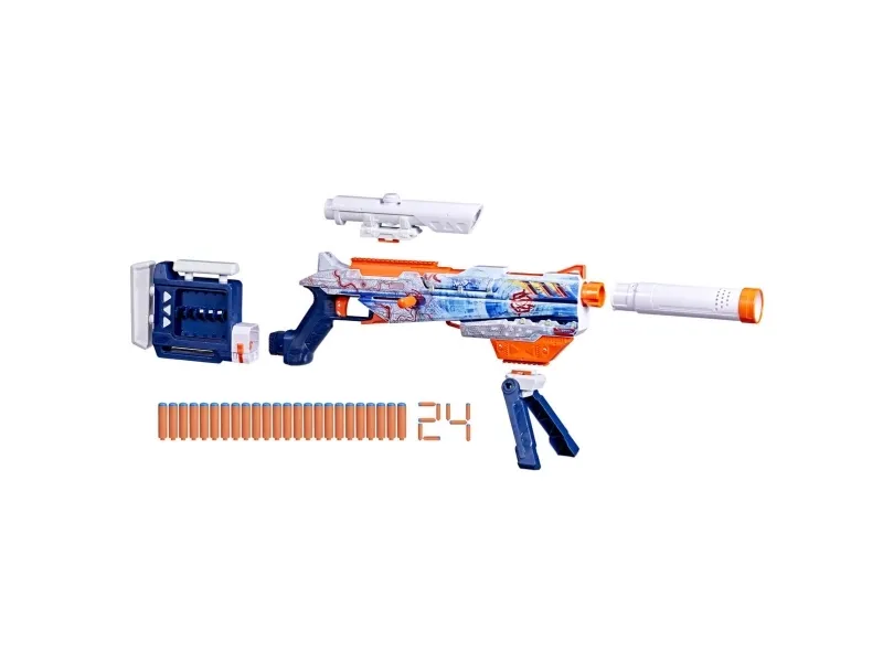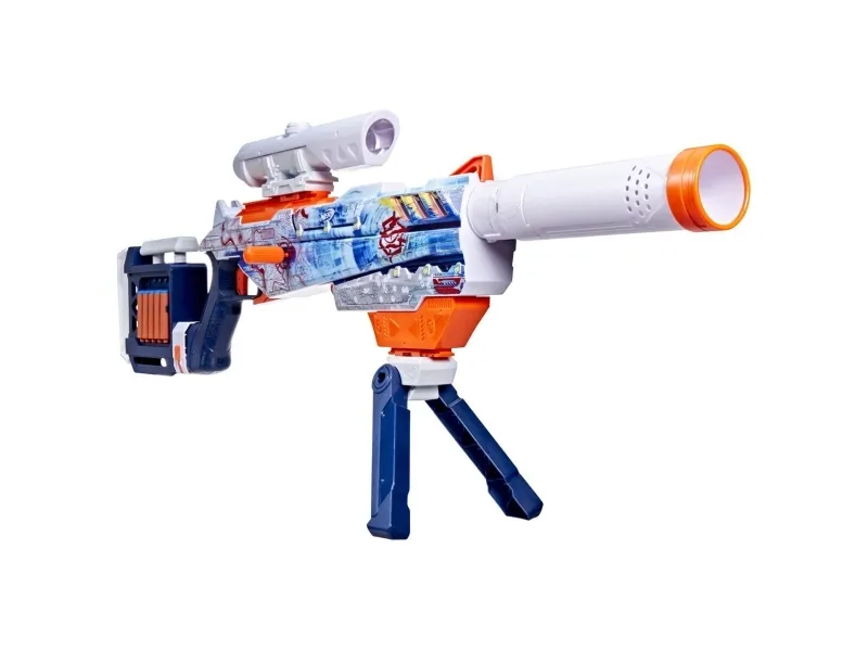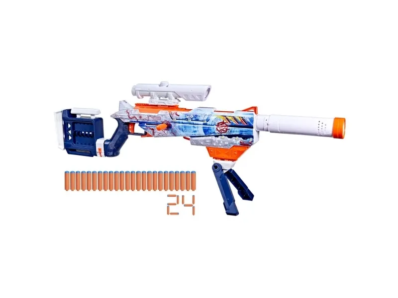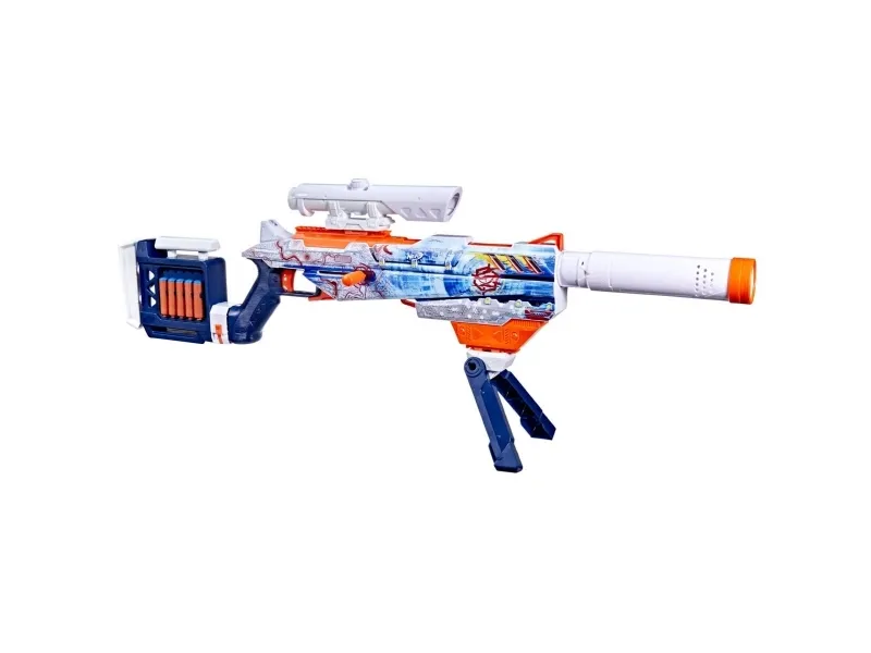 Bring video games to life and customize your ultimate blaster! Nerf Loadout dart blasters include interchangeable attachments to mix and match for endless combinations! The Nerf Loadout Arctic Zerostriker bolt-action blaster has a 6-dart internal clip and comes with scope, stock, barrel, and bipod attachments. It features the legendary Arctic Zerostriker skin geared for epic battles in subzero environments. The bolt can attach on either side for right-handed or left-handed players. The Nerf Loadout Arctic Zerostriker blaster includes 24 Nerf N1 darts designed for extreme accuracy, speed, and distance. Build your Nerf Loadout blaster stockpile for endless customizable options (each sold separately, subject to availability). Nerf N1 darts are compatible only with Nerf N1 dart blasters. Eyewear recommended (not included).