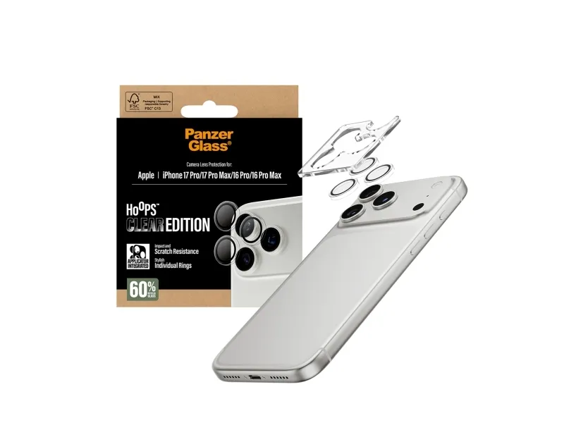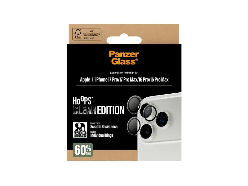 PanzerGlass ® Hoops® Läpinäkyvä kameran objektiivisuoja iPhone 17 Pro | iPhone 17 Pro Max | iPhone 16 Pro | 16 Pro Max, Apple, Apple - iPhone 2025 Pro, Apple - iPhone 2025 Pro Max, Apple - iPhone 16 Pro, Apple - iPhone 16 Pro, Apple - iPhone 16 Pro..., Kuiva-applikaatio, Naarmuuntumaton, Iskunkestävä, Läpinäkyvä, 1 kpl