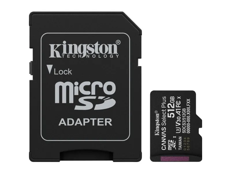 The Kingston Canvas Select Plus microSDXC UHS-I memory card offers reliable performance and ample storage capacity, making it a choice for camera and smartphone users. With 512 GB of storage, it provides space for high-resolution photos and 4K videos. The read rate of up to 150 MB/s ensures quick access to files, allowing smooth playback of your media.