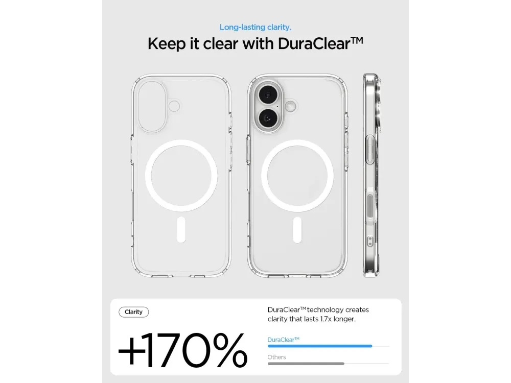 The clear choice. The Ultra Hybrid showcases your iPhone's iconic design. Never let the minimalist dream end with daily protection that keeps you in the clear from drops and scratches. Snap-on MagSafe accessories easily with improved magnetic strength for ultra utility. We got you.